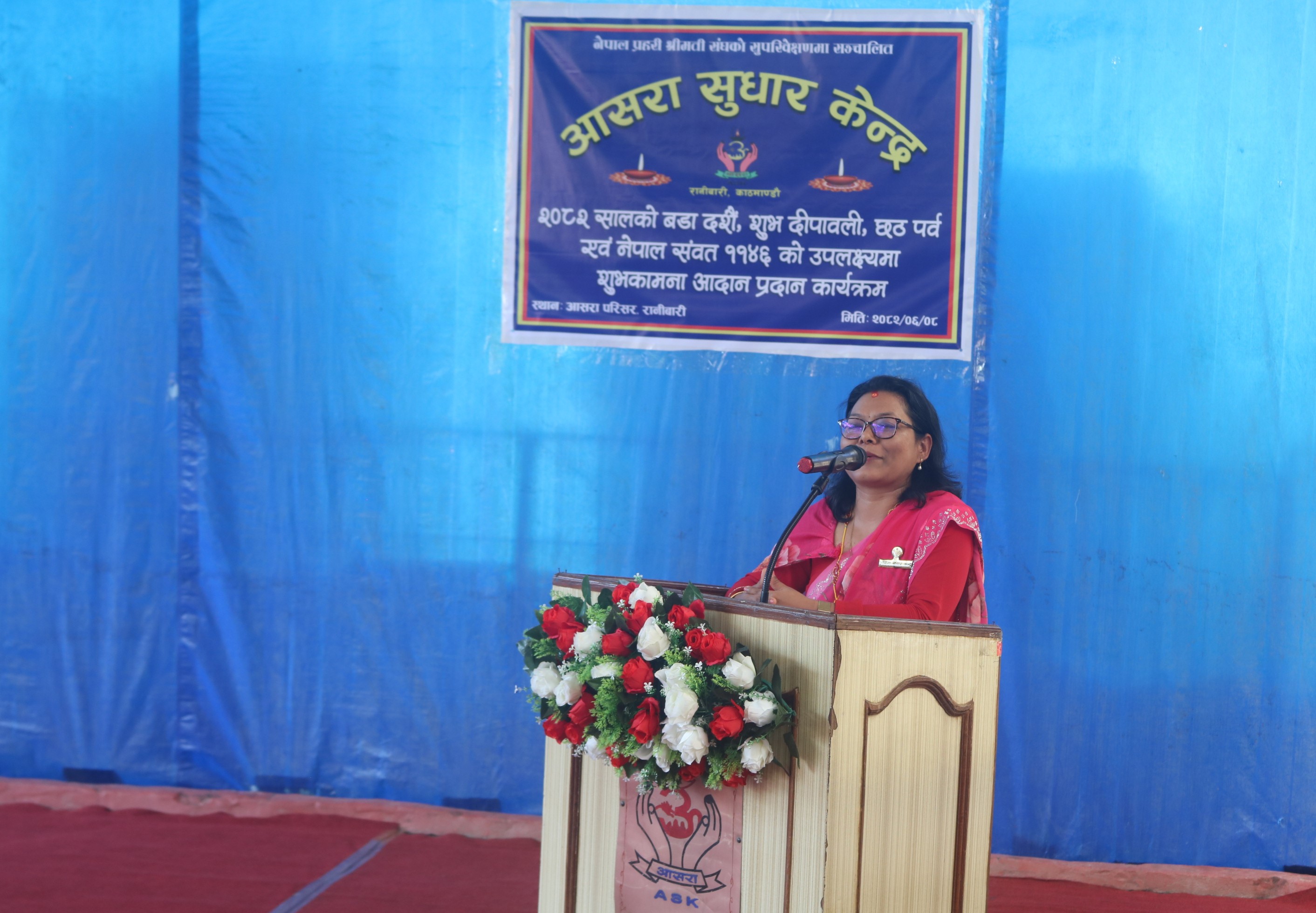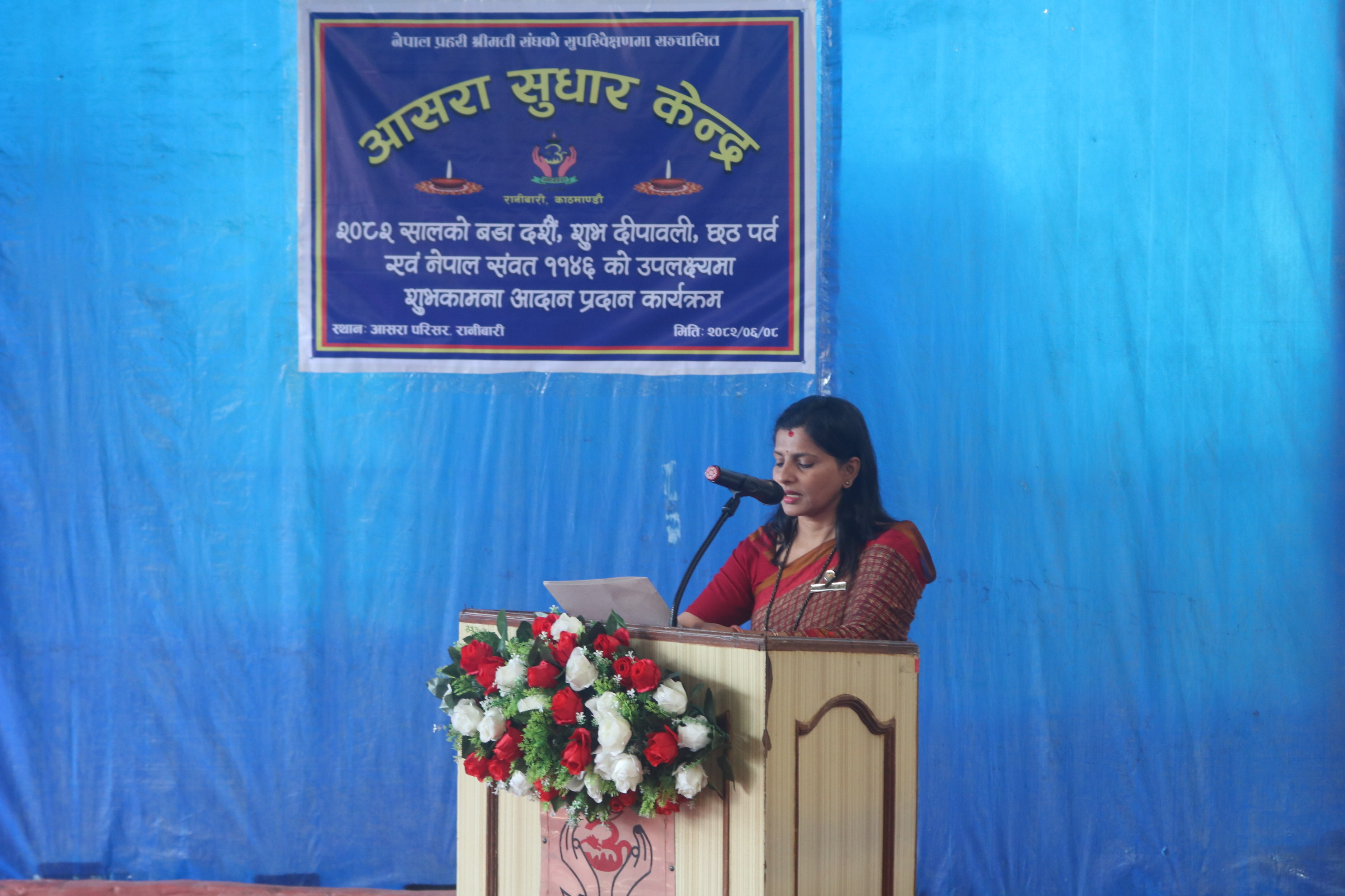 आज मिति २०८२ साल मंसिर २६ गते आसरा सुधार केन्द्र रानीबारी परिसरमा समादरणीय नव अध्यक्ष श्रीमती नबिना खत्री कार्कीज्यूको स्वागत कार्यक्रममा नेपाल प्रहरी श्रीमती संघकी आदरणीय महासचिवज्यू तथा उपाध्यक्षज्यूहरु, सल्लाहकारज्यूहरु, केन्द्रकी आदरणीय उपाध्यक्षज्यू, सचिवज्यू एवं कोषाध्यक्षज्यू, नेपाल प्रहरी श्रीमती संघ तथा यस केन्द्रका पदाधिकारीज्यूहरु, प्रहरी बरिष्ठ अधिकृतज्यूहरु, प्रहरी अधिकृतज्यूहरु, केन्द्रमा कार्यरत कर्मचारीहरु तथा उपचाररत सदस्यहरुको उपस्थितिमा केन्द्रकी सदस्य श्रीमती सुशिला रेग्मी अधिकारीज्यूबाट संचालन भएको कार्यक्रम राष्ट्रिय गानबाट शुरु भई केन्द्रकी आदरणीय सचिव श्रीमती शामिला चालिसेज्यूबाट स्वागत मन्तव्य व्यक्त, उपचाररत सदस्यहरुबाट साँस्कृतिक कार्यक्रमको प्रस्तुती, केन्द्रकी समादरणीय नव अध्यक्ष श्रीमती नबिना खत्री कार्कीज्यूबाट केन्द्रको अध्यक्षको पदभार ग्रहण गर्नुको साथै आफ्नो प्रेरणादायी शुभकामना मन्तव्य व्यक्त गर्नुको साथै केन्द्रको स्थलगत अवलोकन निरीक्षण गर्नु भएको कार्यक्रमका केही झलकहरु ।