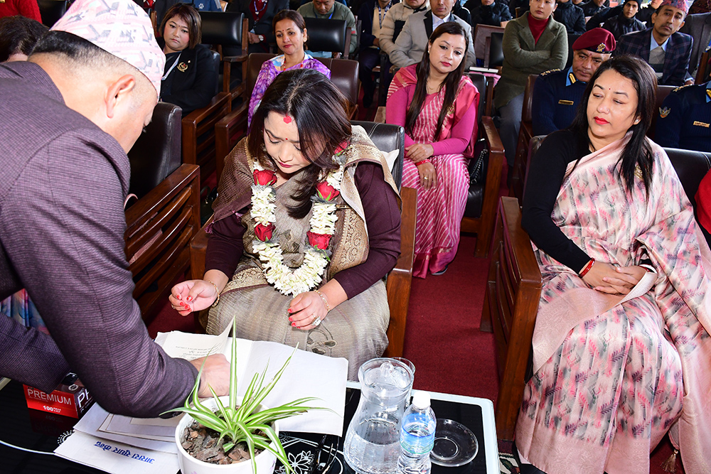 मिति २०८२ साल मंसिर २६ गते केन्द्रकी समादरणीय नव अध्यक्ष श्रीमती नविना खत्री कार्कीज्यूबाट केन्द्रको अध्यक्षताको पदभार ग्रहण गर्नु हुँदै ।