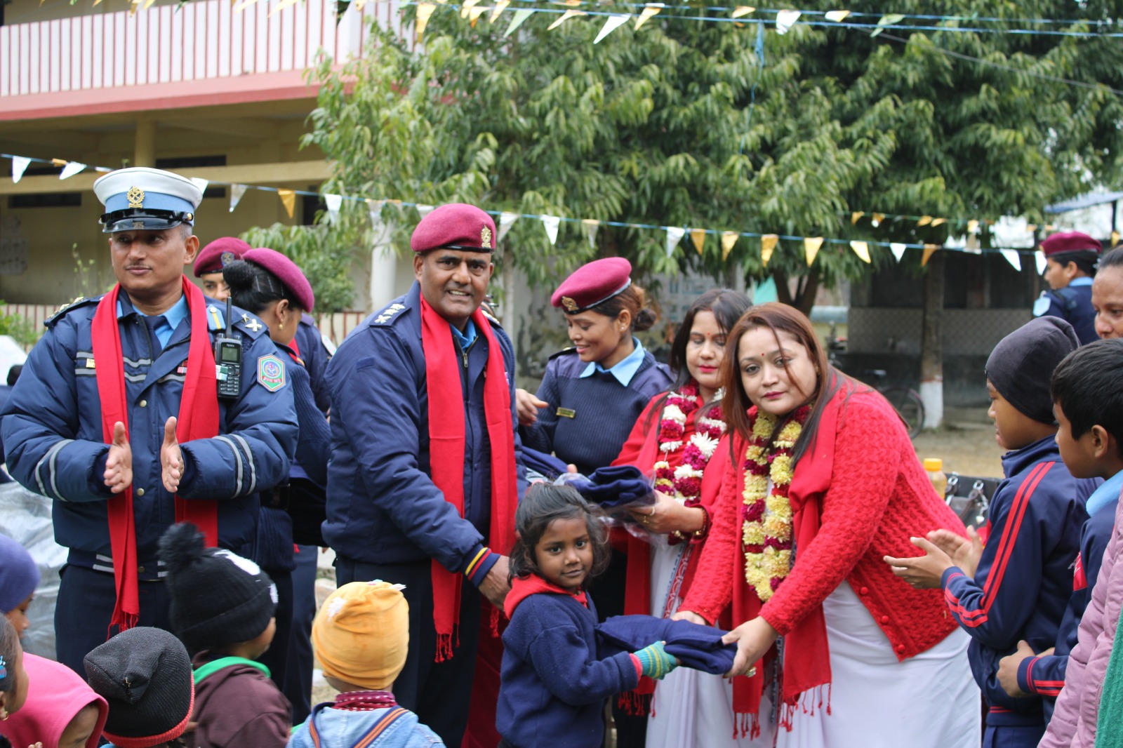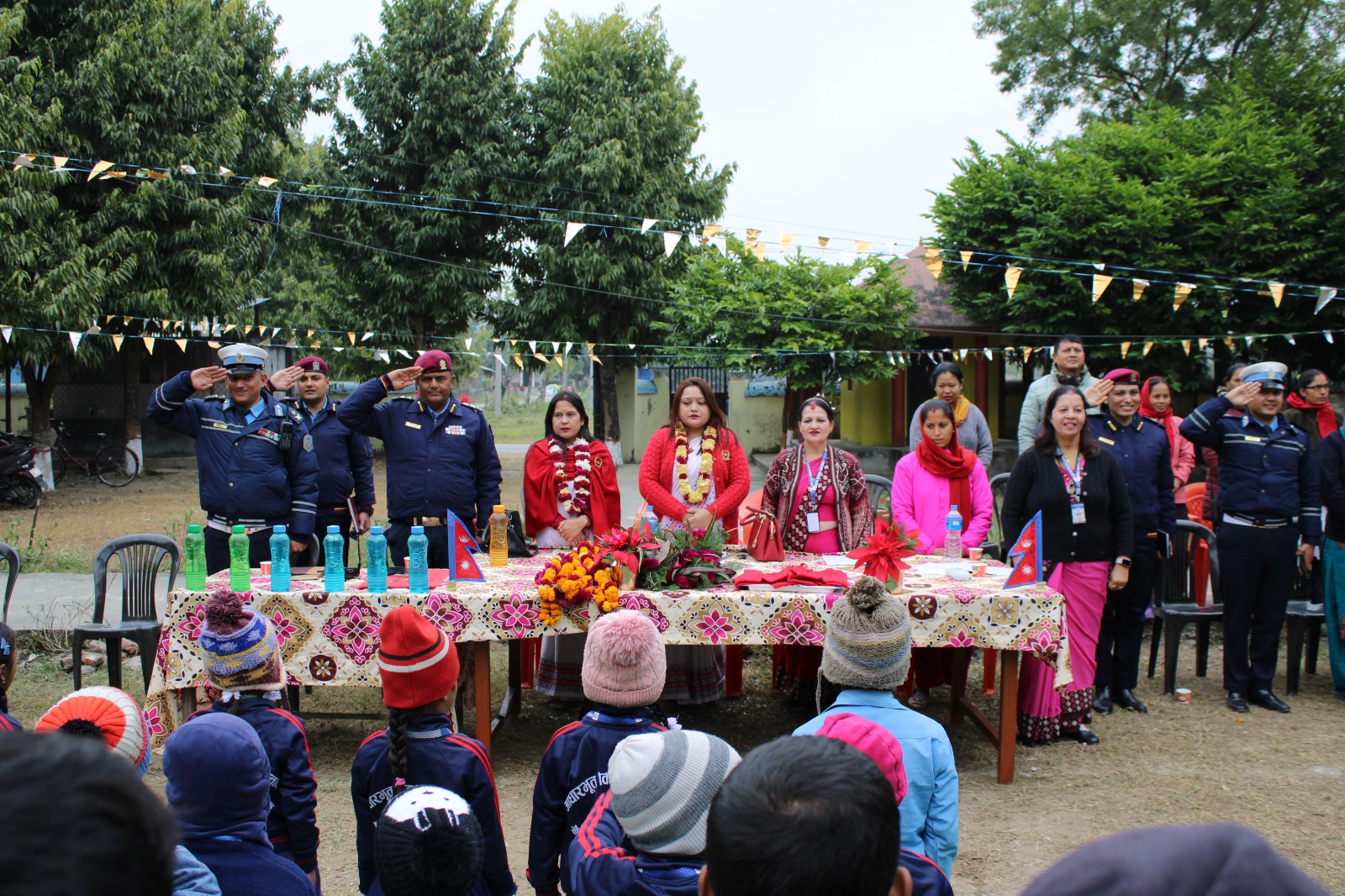 यस नेपाल प्रहरी श्रीमती संघका अध्यक्ष श्रीमती नविना खत्री कार्कीज्यूको प्रमुख आतिथ्यतामा सम्पन्न भएको उक्त कार्यक्रममा संघका सचिव(कार्यक्रम) श्रीमती संगिता लम्सालज्यू, जिल्ला प्रहरी कार्यालय चितवनका प्रमुख प्रहरी उपरीक्षक गोविन्द पुरीज्यू ,अन्य सिनियर प्रहरी अधिकृतज्यूहरु, विद्यालय व्यवस्थापन समितिका अध्यक्ष विनोद चौधरीज्यू, खैरहनी नगरपालिका वडा नं. ७ का वडा अध्यक्ष मनेजर महत्तोज्यू, प्रधानध्यापक मीरा खरेलज्यू, शिक्षक/शिक्षिकाज्यूहरु , अन्य प्रहरी कर्मचारी तथा विद्यार्थी भाइबहिनीहरु समेतको उपस्थिति रहेको थियो